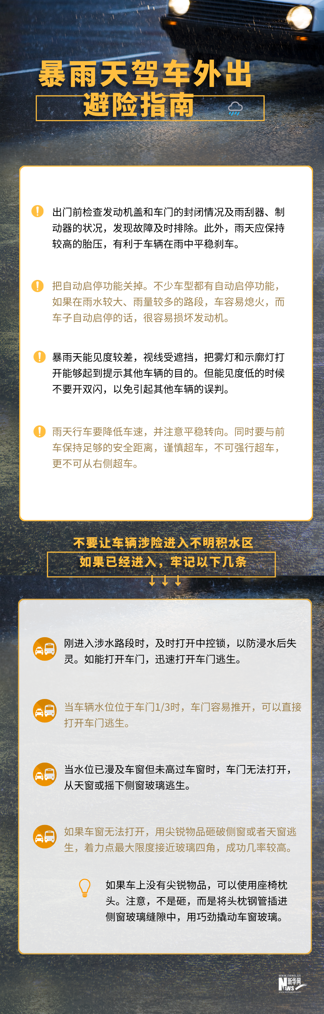 暴雨天如果必须驾车外出,要掌握以下这些避险自救知识 ↓↓↓