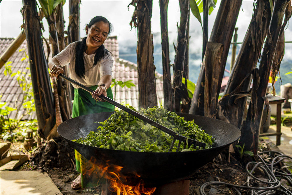 8月20日,云南省沧源县班洪乡班洪村村民在炒茶。新华社记者 江文耀 摄