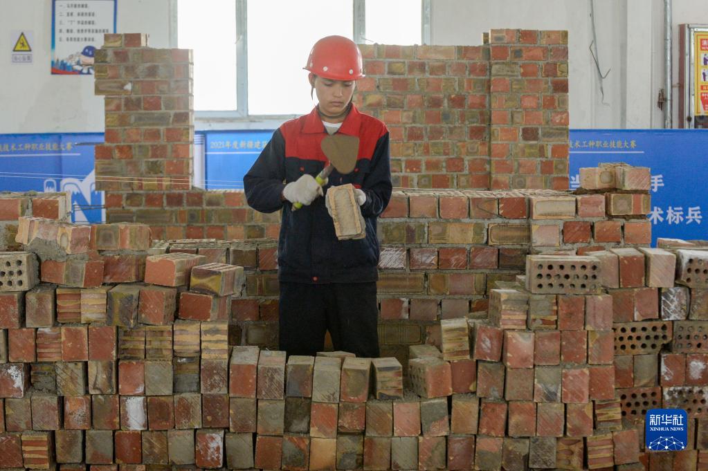 新华社乌鲁木齐8月24日电(记者高晗)在新疆伽师县中等职业技术学校的实训教室内,17岁的乃斯如拉·吐尔荪正在一面半截墙前忙活,只见他将砖头放到墙体上的同时,另一只手用瓦刀抹去多余的水泥,如画画一样塑造着建筑图案,一面墙顿时灵动起来。