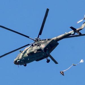 8月23日,参加“空降排”空降兵分队比赛的各参赛队队员在俄罗斯梁赞州跳伞。新华社发(方超 摄)