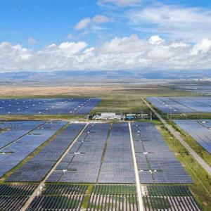 这是2020年8月17日在青海省海南藏族自治州共和县塔拉滩绿色产业发展园区拍摄的光伏电站(无人机照片)。新华社记者 张龙 摄