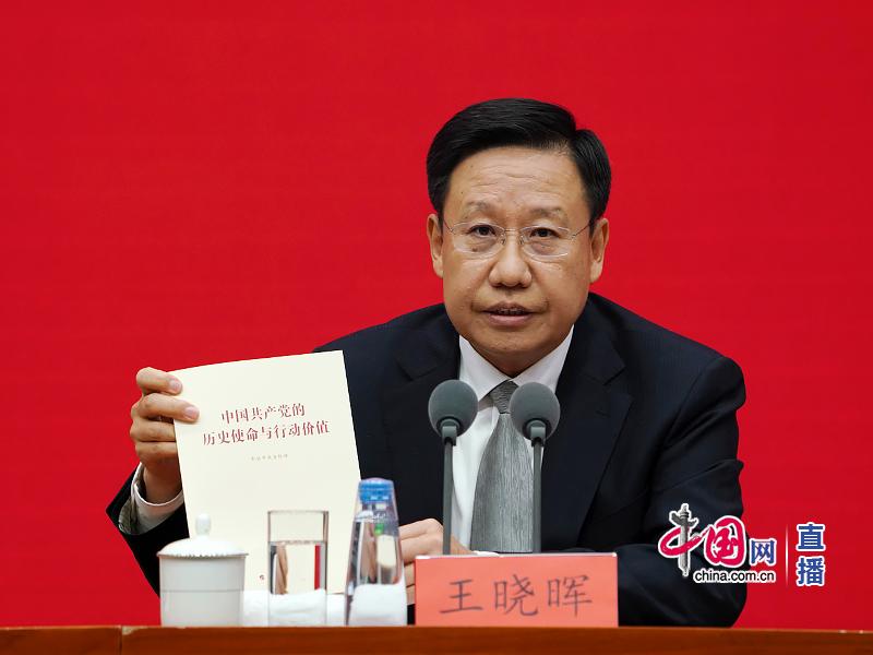 中央宣传部副部长王晓晖介绍文献《中国共产党的历史使命与行动价值》