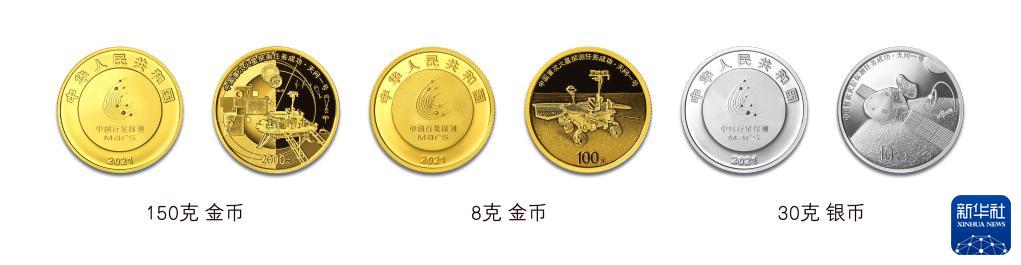 中国首次火星探测任务成功金银纪念币正背面图片。新华社发(中国金币总公司供图)