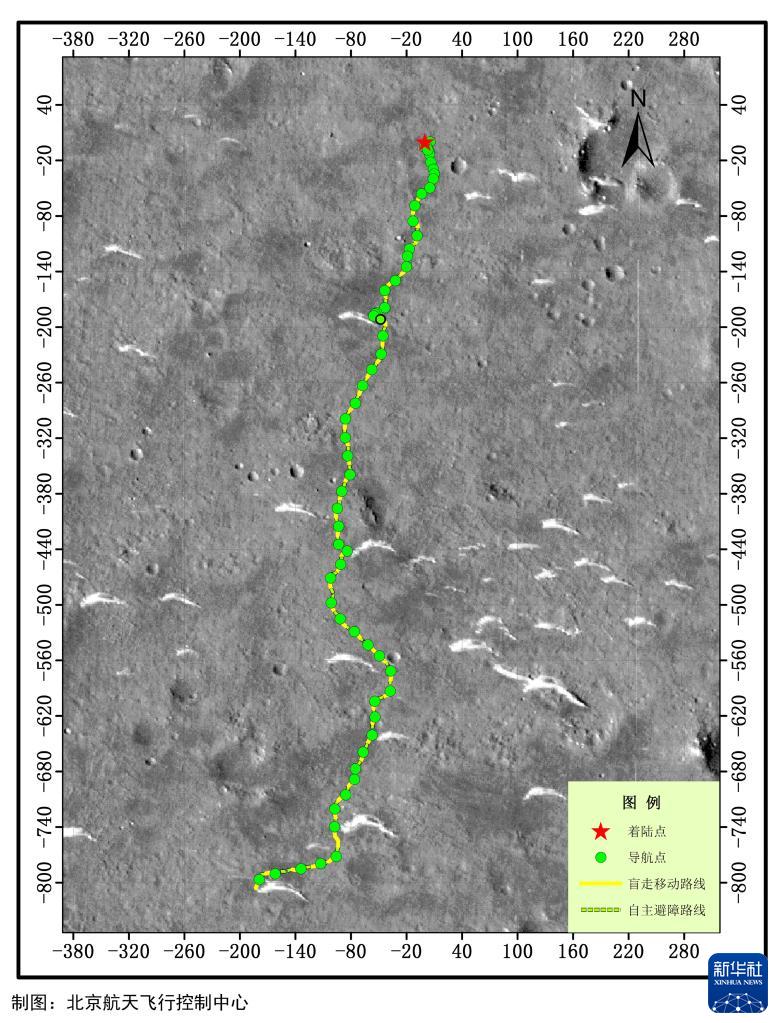祝融号火星车移动节点和里程。新华社发(国家航天局供图)