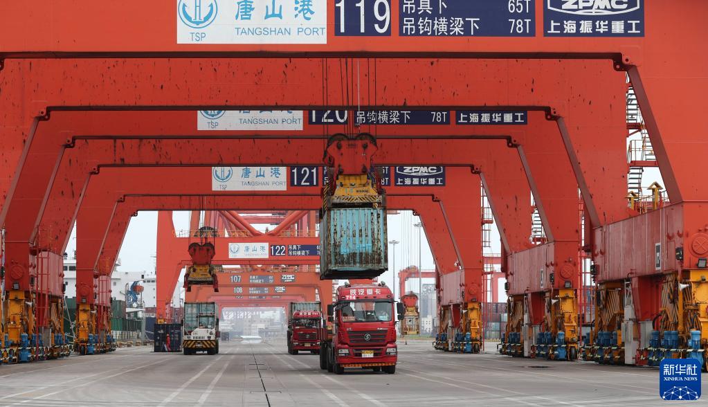 7月15日拍摄的河北唐山港京唐港区。新华社发(李磊 摄)