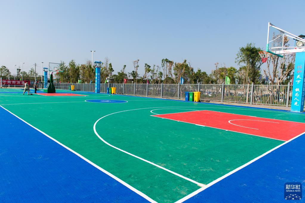 这是9月1日在长沙黄花国际机场茉莉溪空港国际社区拍摄的涉及高风险航班服务人员集中居住区的篮球场。 新华社记者 陈思汗 摄