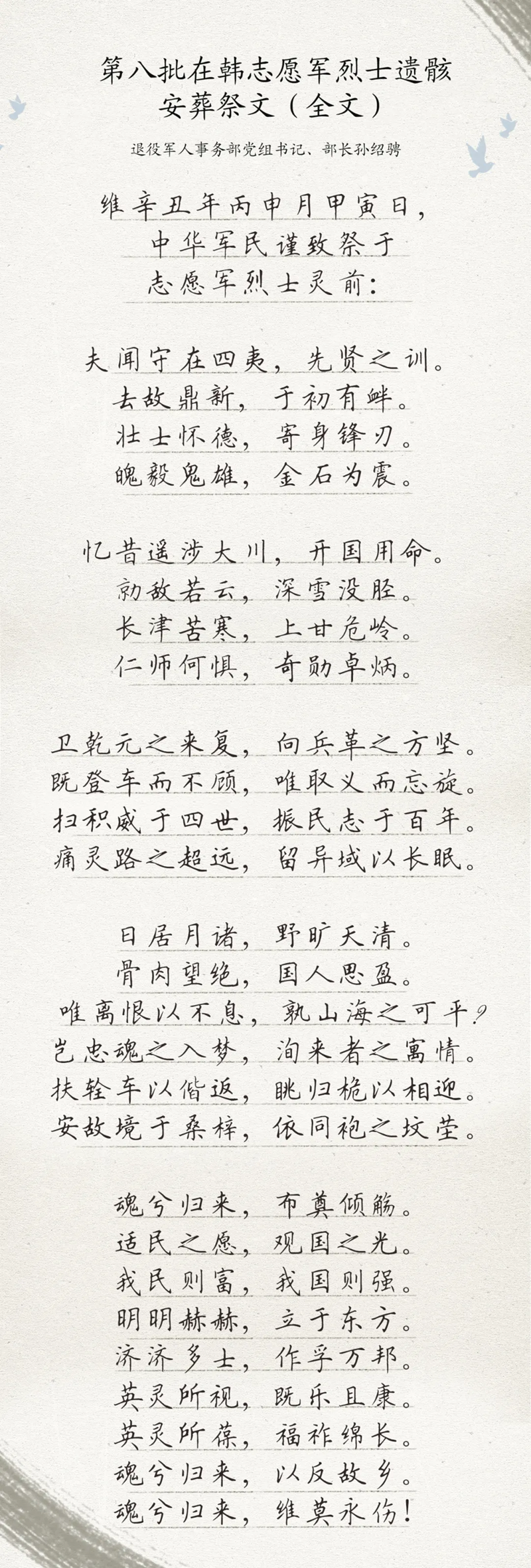 退役军人事务部党组书记、部长孙绍骋致祭文