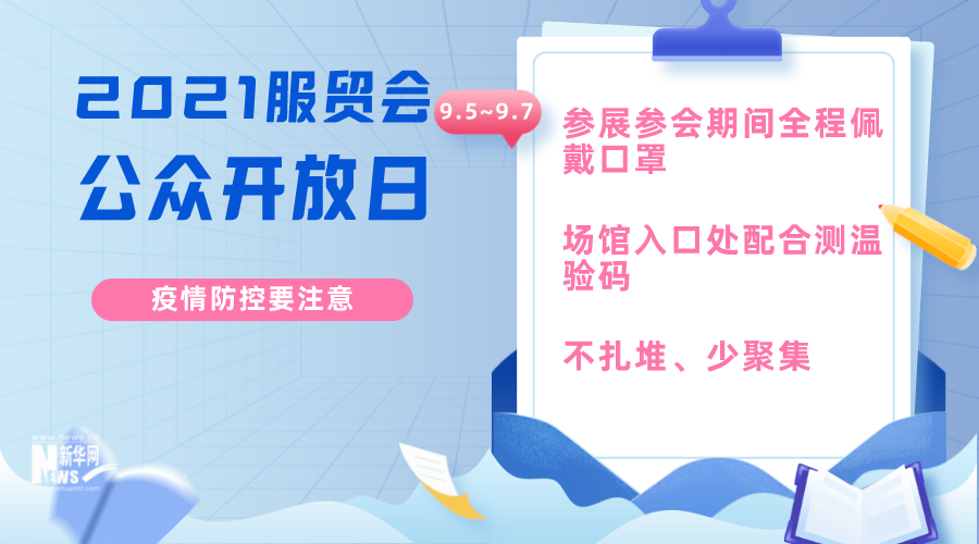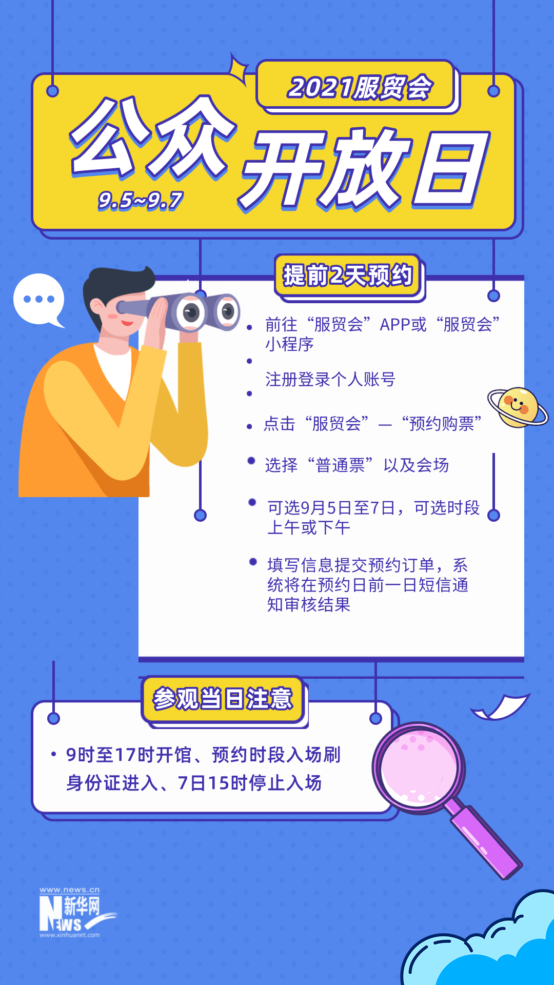 2021年中国国际服务贸易交易会于9月2日至7日在北京举行。其中,9月5日至7日三天为公众开放日。想去服贸会观展的公众如何购票?如何出行最方便?疫情防控要注意哪些要求?你关心的,都有答案。