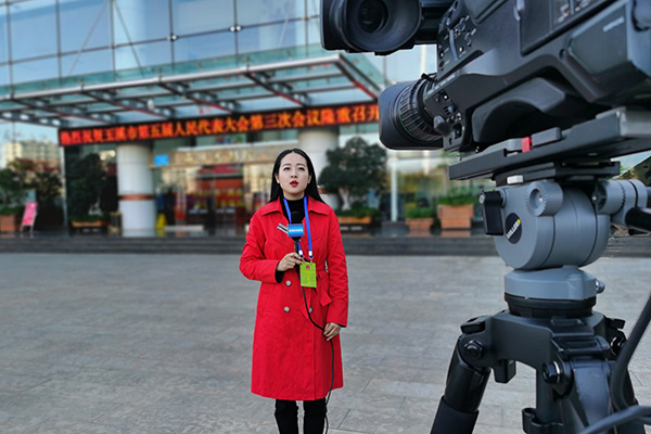 玉溪市红塔区融媒体中心+刘歆旎+采访玉溪市五届人大三次会议,在闭幕时出口播