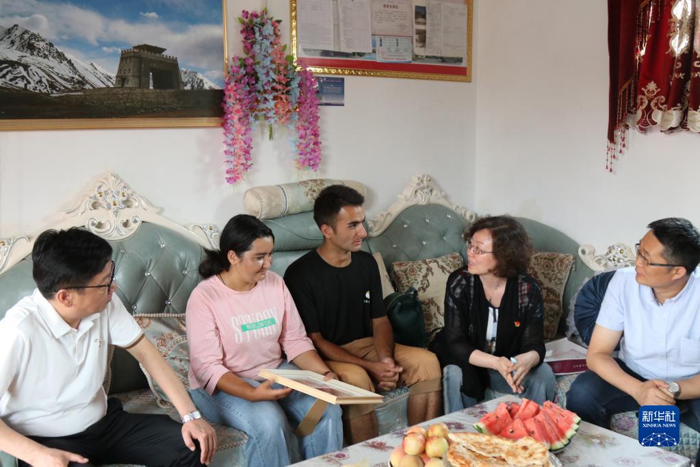 2021年暑假,天津职业技术师范大学少数民族学生管理服务工作室主任鞠娴妹(右二)等教师、干部到少数民族学生家中开展暑期家访活动(资料照片)。新华社发