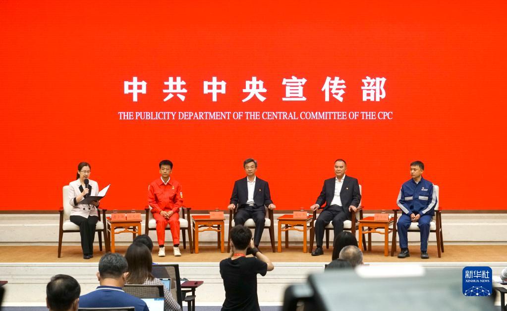 9月8日,中共中央宣传部举行中外记者见面会,四位来自能源领域的优秀共产党员代表,围绕“践行初心使命,贡献能源力量”与现场记者展开交流。新华社记者 殷刚 摄