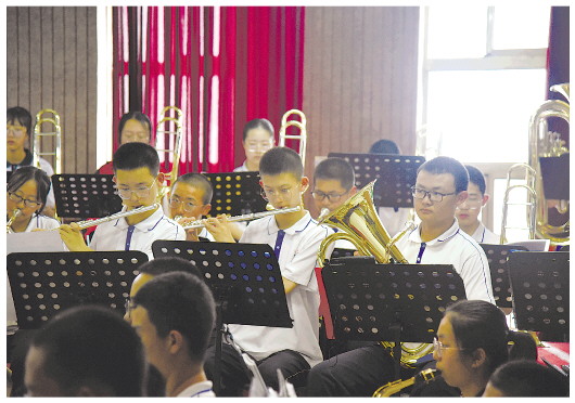 会宁县会师中学的管乐团在进行排练。 本报记者崔翰超摄