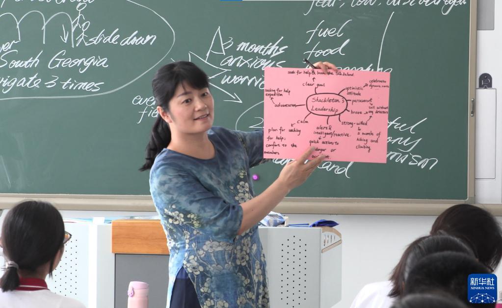 北京市汇文中学教育集团英语教师罗锦虹在给学生上课(资料照片)。新华社发