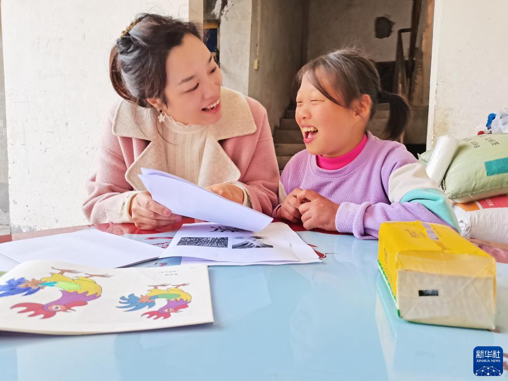 3月23日,四川省眉山市仁寿县特殊教育学校教师颜志霞为学生提供“送教上门”服务。新华社发