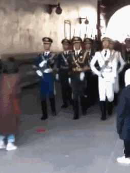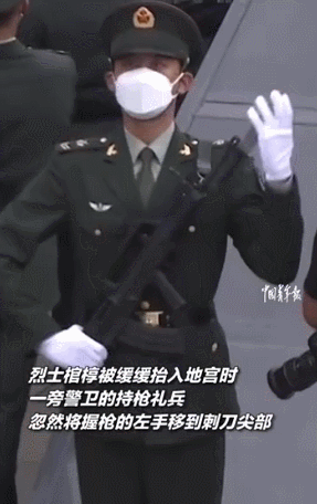 一旁警卫的持枪礼兵韩家奇