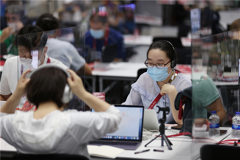 人民日报社 李硕 在东京奥运会主新闻中心工作