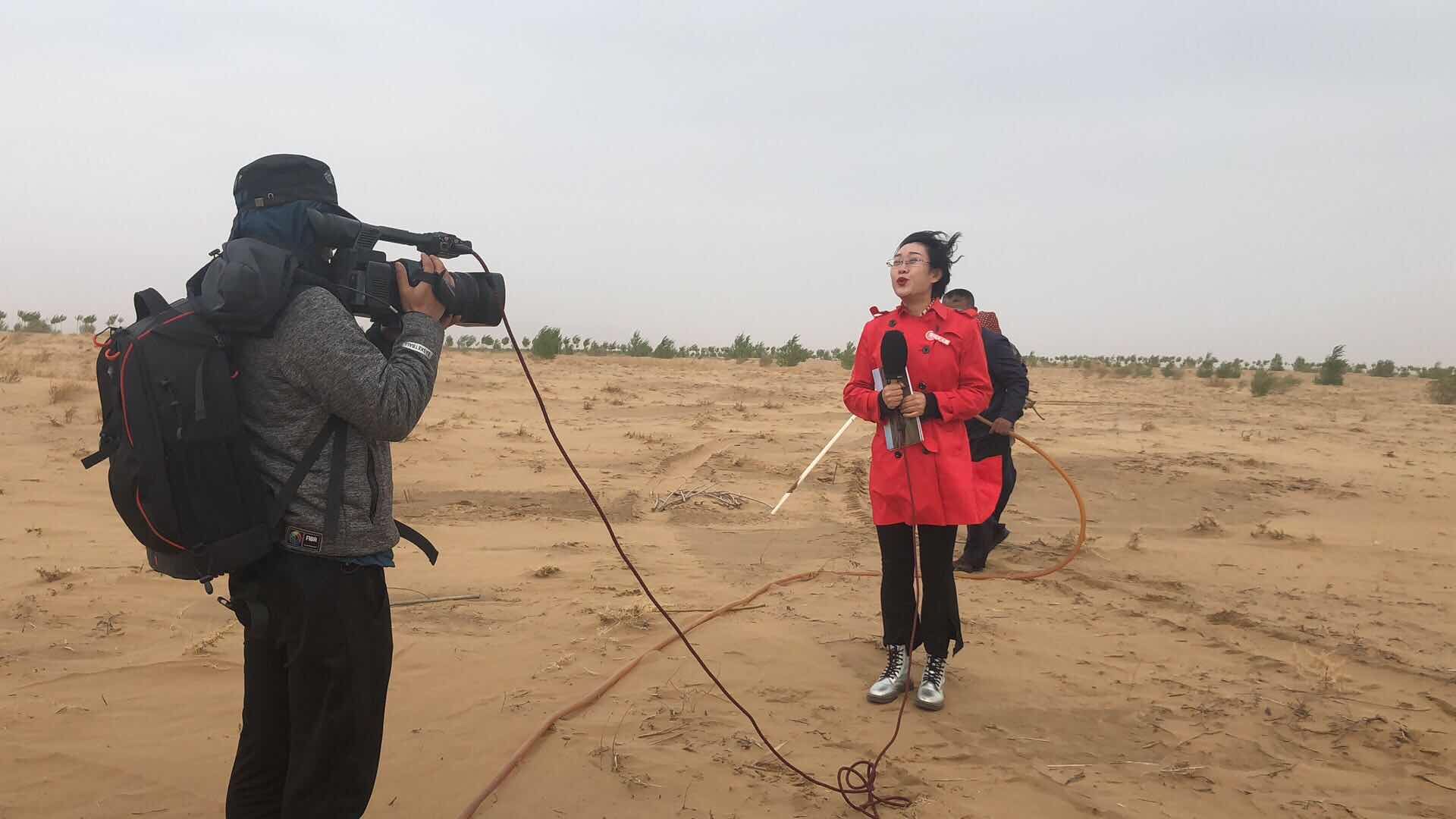 2018年,世界地球日在库布其沙漠采访