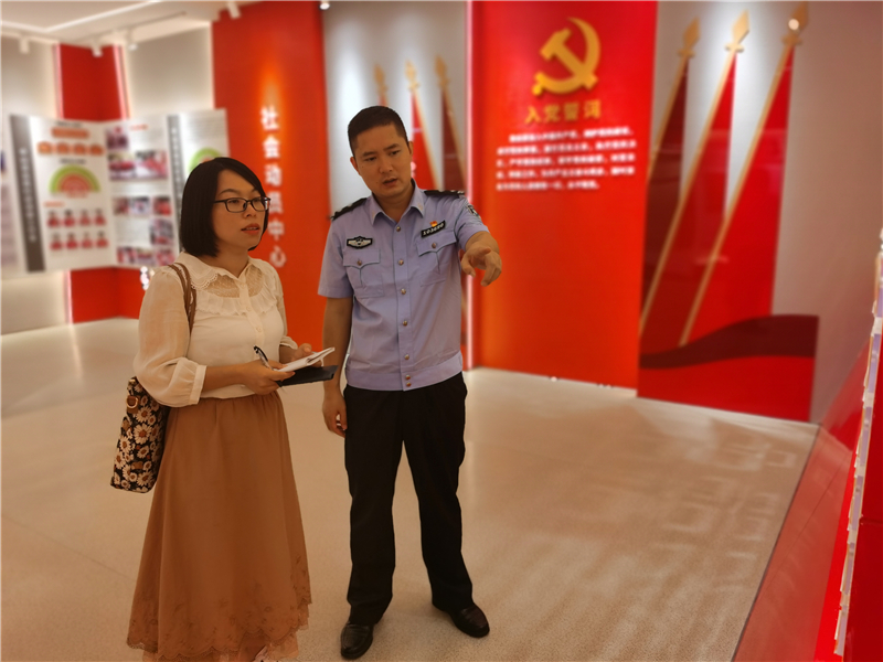 图为马艳在南宁市中山派出所采访全国公安系统二级英模黄礼。
