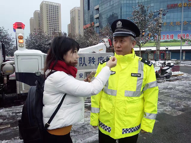 陕西广电融媒体集团(台)-范雪-2018年西安大雪道路结冰,西安交警全员上岗疏导交通,采访时任西安市交警支队支队长