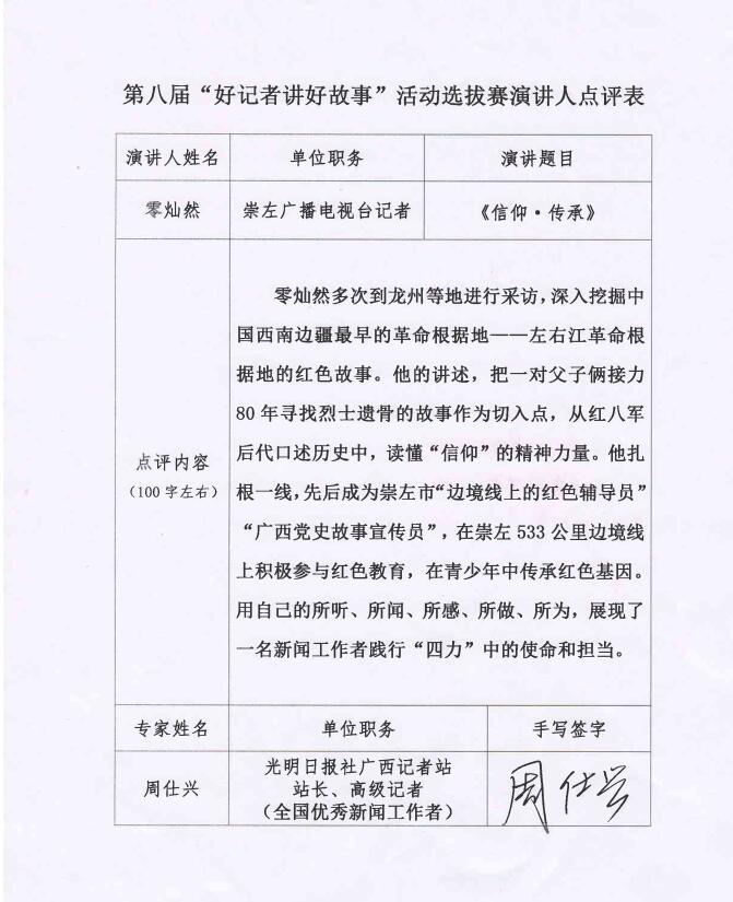 崇左广播电视台零灿然:信仰·传承