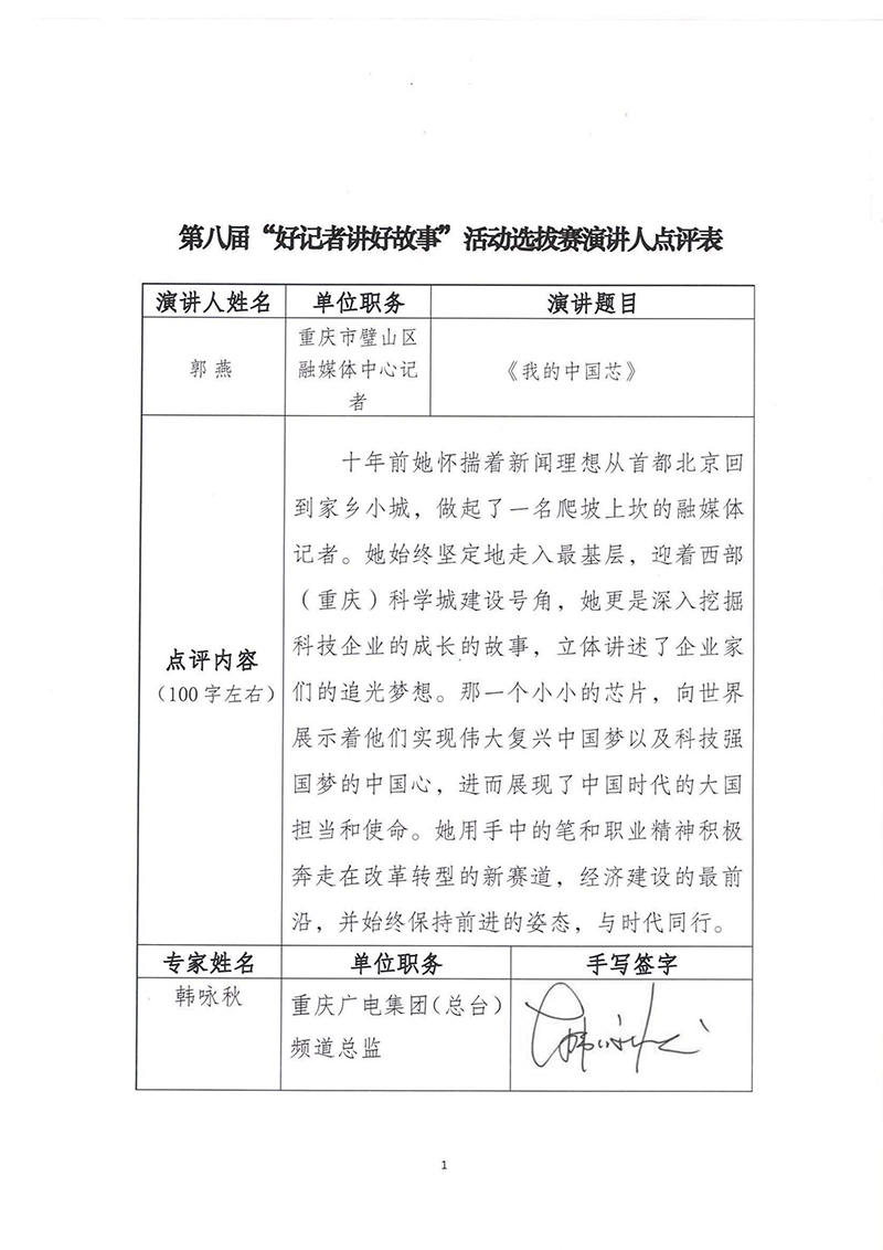 第八届“好记者讲好故事”活动选拔赛演讲人点评表