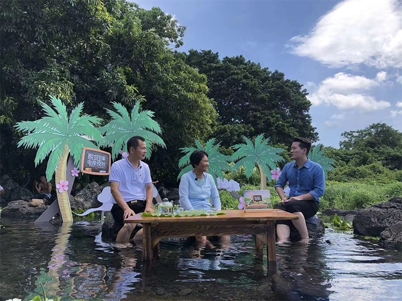 图为海南广播电视总台记者曾实在定安冷泉采访
