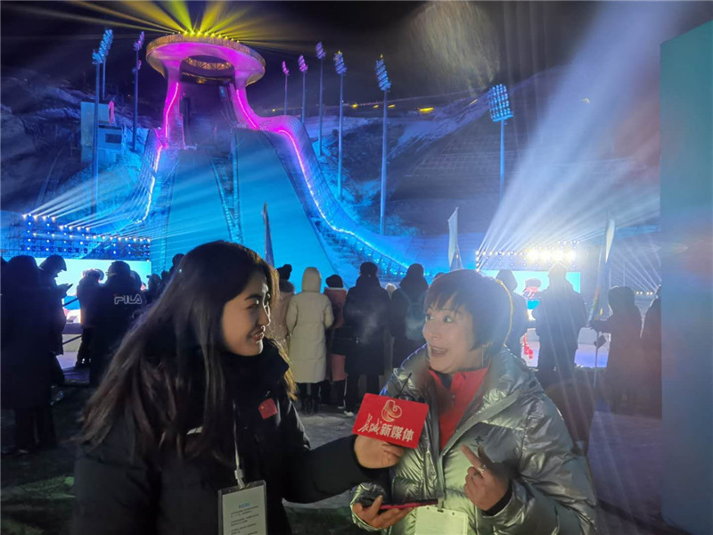 2、河北省长城新媒体集团 段美嘉 “雪如意”全球点亮仪式上采访中国首位滑雪世界冠军郭丹丹