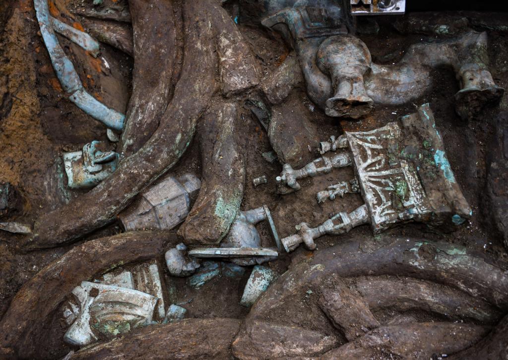 此外,8号“祭祀坑”还发现了见证中原文明和古蜀文明交融的朱砂彩绘青铜尊、面部彩绘的青铜人头像等。