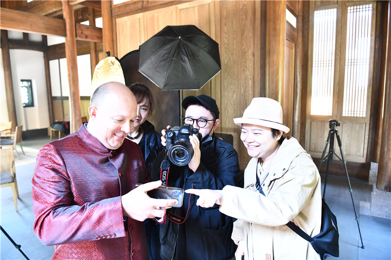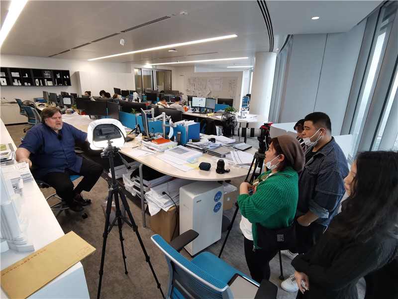 新民晚报胡彦珣。《百年大党--老外讲故事》视频组的拍摄日常。