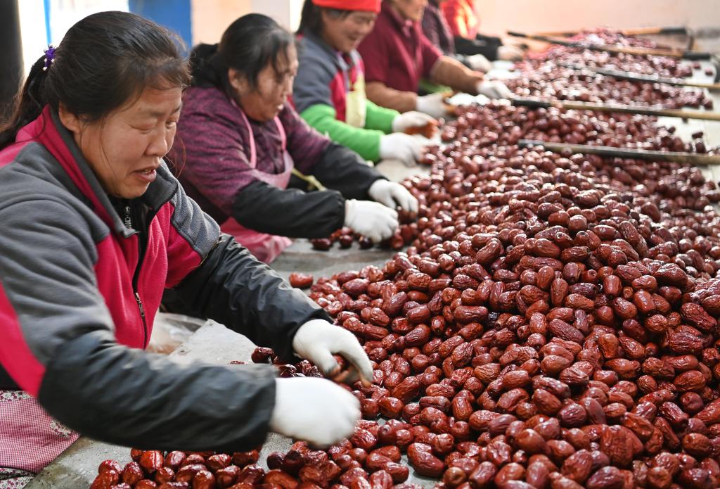 陕西省榆林市佳县佳州街道木场湾村村民在分拣红枣(2021年1月19日摄)。新华社记者 陶明 摄