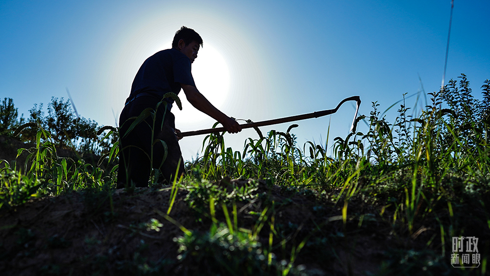 △高西沟村民正在谷子地除草。(总台国广记者李晋拍摄)
