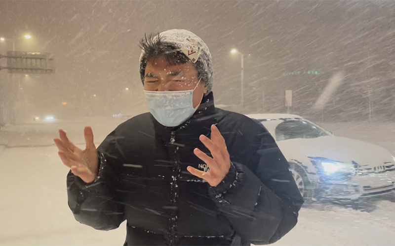山东广播电视台 史欣亮 烟台寒潮暴雪中史欣亮出镜报道