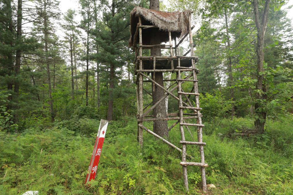 大亮子河东北抗联密营内的哨卡(复原,8月20日摄)。新华社记者何山摄