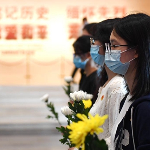 9月18日,各界群众来到中国人民抗日战争纪念馆向抗战英烈献花。新华社记者 张晨霖 摄