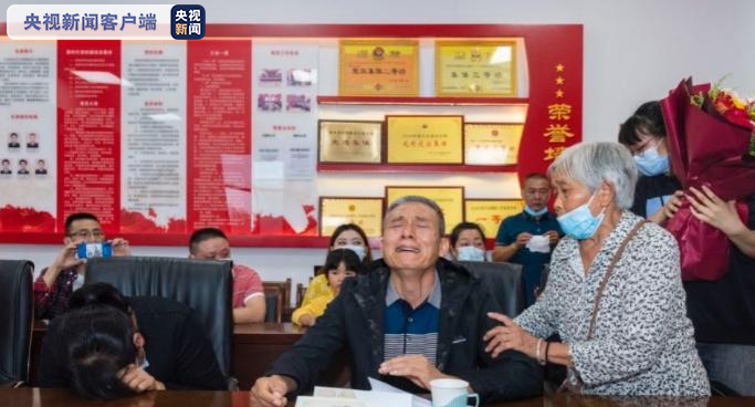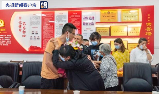 9月18日,四川南充顺庆公安分局,52岁的吕某合和46岁的邓某与失散24年的儿子紧紧地拥抱在一起。