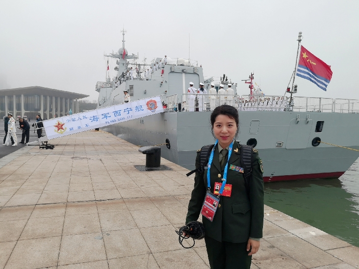 李琳在多国海军活动时采访某新型导弹驱逐舰