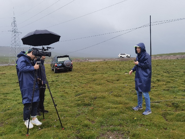 在青海木里矿区海拔4200米冒雨采访报道