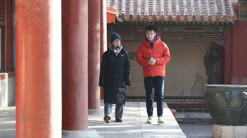 在故宫制作春节特别节目,采访研究员许静