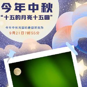 新华社南京9月20日电(记者邱冰清、朱筱)月到中秋分外明。中秋将至,赏月是重头戏之一。今年中秋“十五的月亮十五圆”,最圆时刻为9月21日的7时55分。