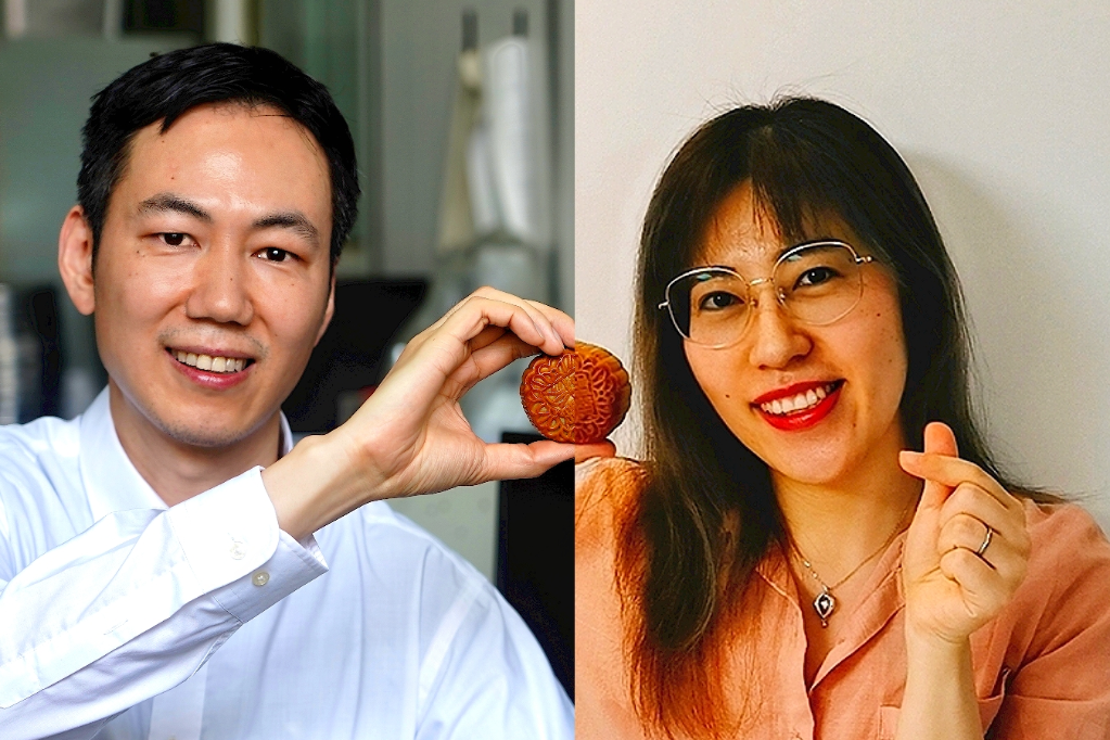 图为黄凯与妻子隔空“拼月饼”,寄托团圆美好的愿望。左图为黄凯,9月17日拍摄于中科院合肥物质科学研究院等离子体物理研究所聚变堆材料及部件研究室的实验室。新华社记者朱青 摄;右图为黄凯的妻子欧阳敏慧,9月18日拍摄于上海家中。受访者供图