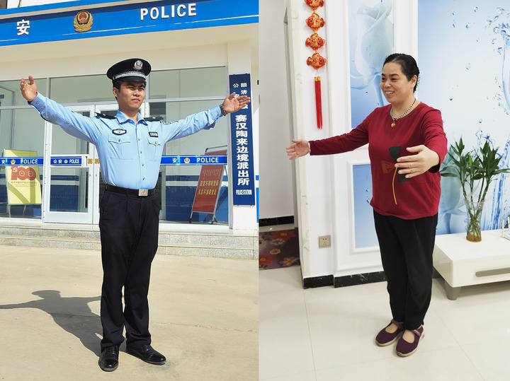 图为民警娄金拴与母亲隔空拥抱拍照留念表达思念之情。新华社记者彭源 摄
