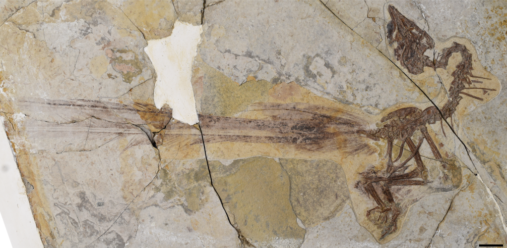 新华社北京9月22日电(记者金地、董瑞丰)在自然界中,许多雄鸟长有色彩绚丽、形态繁杂的尾羽以吸引异性。在约1.2亿年前,一种鸟类也有着形态夸张的尾羽。由中科院古脊椎动物与古人类研究所研究人员主导的中外联合团队对这种鸟类进行了研究,揭示了性选择和自然选择的动态相互作用对鸟类早期演化的影响。相关成果已发表在国际期刊《当代生物学》上。