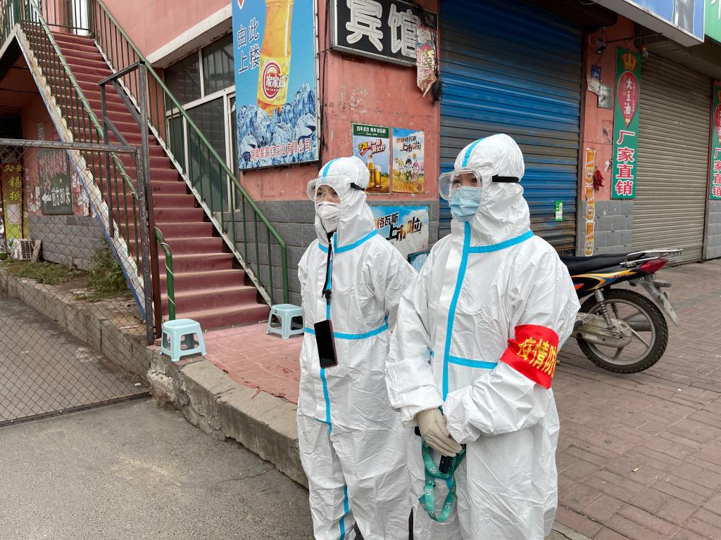 25日,巴彦县兴隆镇,小区门口值守的防疫工作人员。新华社记者 黄腾 摄