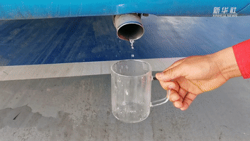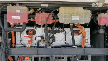 在氢燃料电池大巴的车尾底部,有一根和普通燃油车一样的“排气管”,但它的功能并不是排放尾气。工作人员告诉记者,氢燃料电池大巴在行驶过程中,不产生尾气排放,只排水,实现了真正的“零碳排放”。