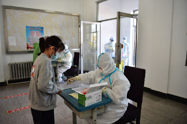 在该核酸检测点,兴隆镇的居民保持间隔排队等候,社区工作人员疏导现场秩序,医务人员为居民进行信息登记、核酸检测采样,现场紧张而有序。兴隆镇党委书记于广勇说,哈尔滨市正调配60辆大巴车支援兴隆镇,两辆车为一组,组成30个流动核酸检测点,方便当地居民就近进行核酸检测采样。