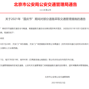 原标题:关于2021年“国庆节”期间对部分道路采取交通管理措施的通告