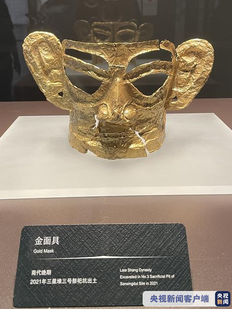 三号坑新出土金面具,神树纹玉琮,立发人头像,青铜小立人(昵称:奥特曼)等新出土文物将与公众见面。(记者 田云华)