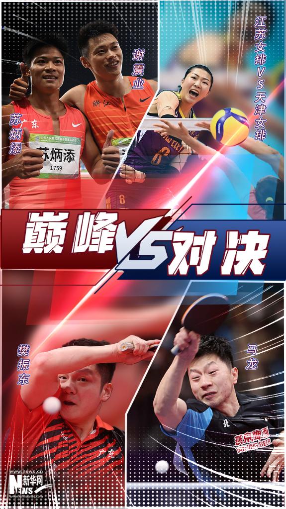女排决赛在天津和江苏两强之间展开,天津队明显发挥得更为出色,3:1拿下比赛后,她们实现了近五届全运会四次夺冠的惊人成就;百米飞人大战中苏炳添与谢震业强强对决,最终前者首夺全运会百米冠军;全运会乒乓男团决赛中樊振东在6-10落后的绝境下连连追分,13-11逆转马龙......
