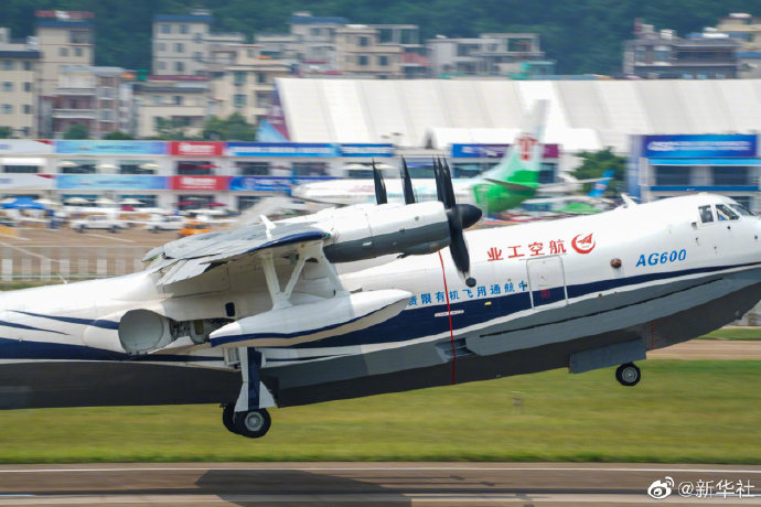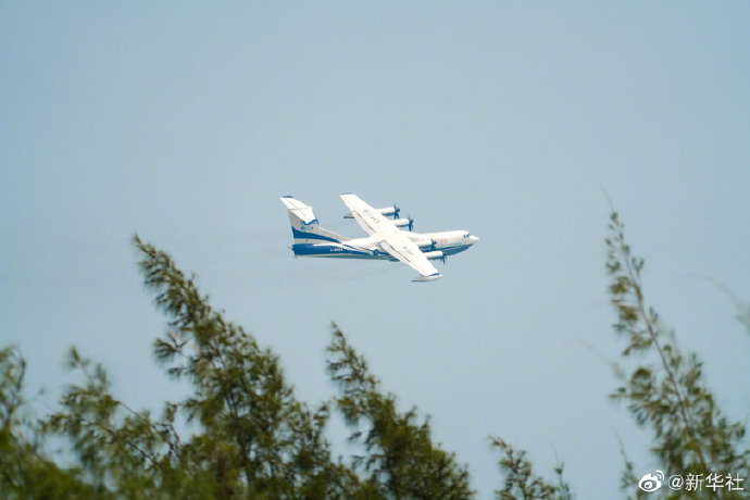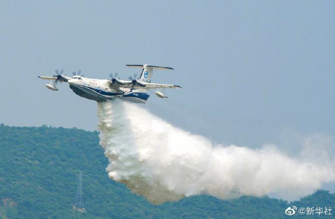 9月28日,第十三届中国国际航空航天博览会期间,我国自主研制的大型灭火/水上救援水陆两栖飞机“鲲龙”AG600,在碧海蓝天的见证下,成功完成珠海的飞行投水功能演示首秀。投水后飞机状态良好,响应特性正常,投水任务系统及飞机其他各系统工作稳定。(记者胡喆、刘大伟)