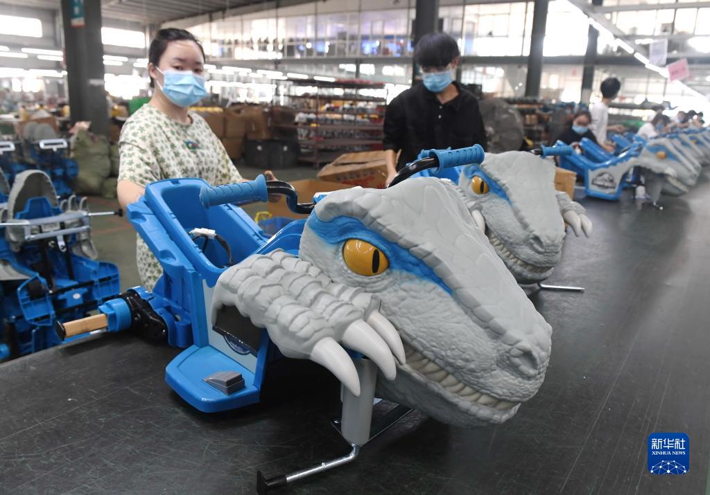 9月25日,在位于晋江经济开发区的泉州嘉利儿童用品有限公司,员工在装配儿童玩具车。新华社记者 林善传 摄
